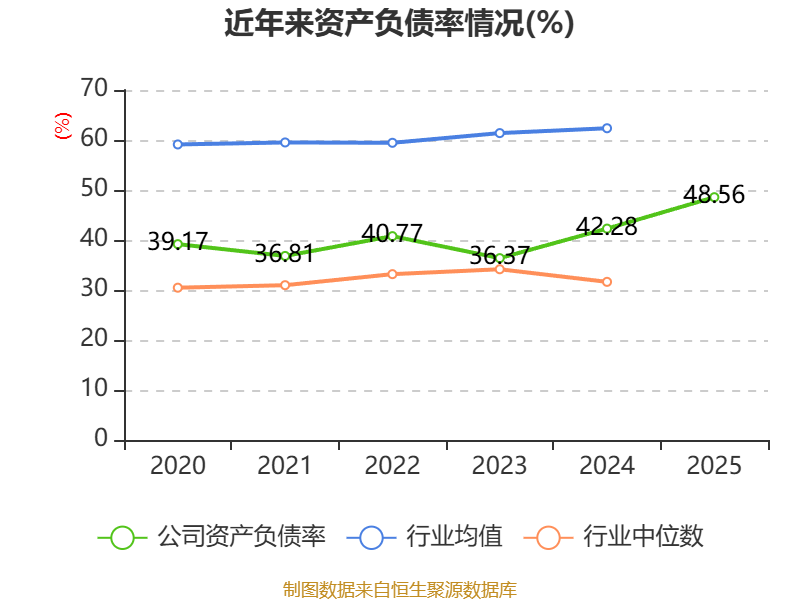 负债重大变化方面,截至2025年末,公司其他应付款(含利息和股利)较上年末增加127.04%,占公司总资产比重上升7.74个百分点;一年内到期的非流动负债较上年末减少26.85%,占公司总资产比重下降1.08个百分点;合同负债较上年末减少41.88%,占公司总资产比重下降0.77个百分点;短期借款较上年末减少2.95%,占公司总资产比重上升0.62个百分点。
