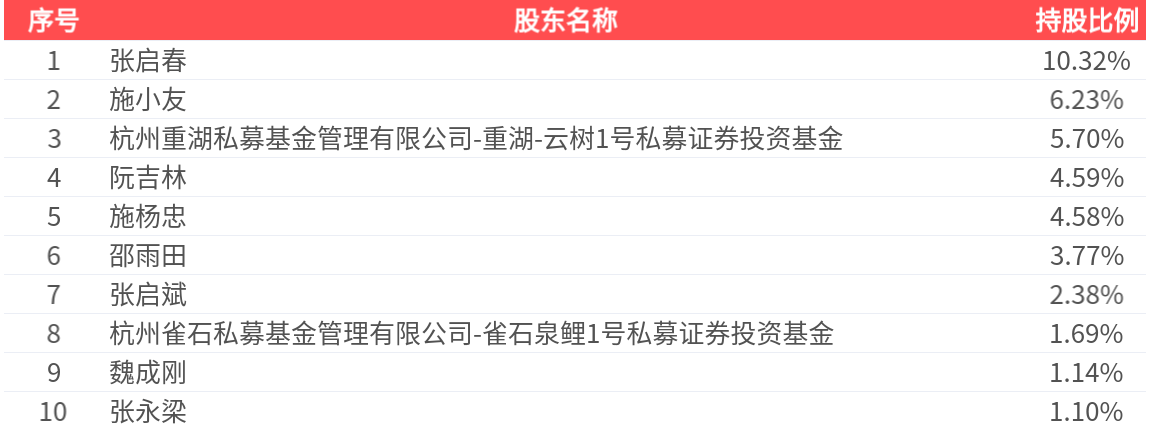 公司股东户数为1.28万户,前十大股东持股数量为8392.19万股,占总股本比例为41.51%,前十大股东持股情况如下: