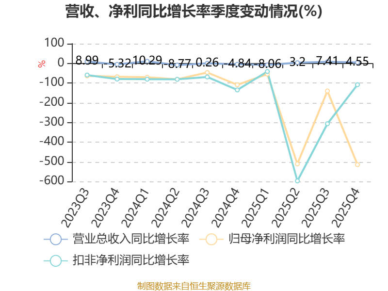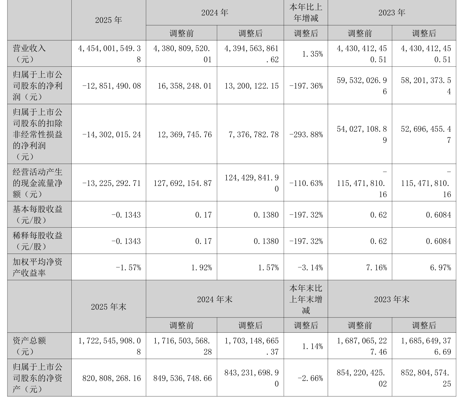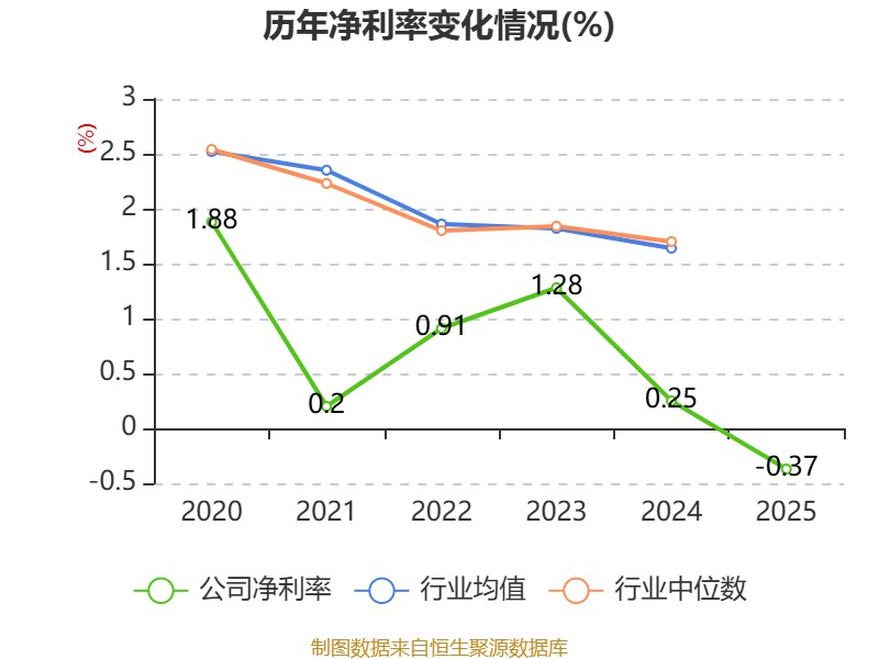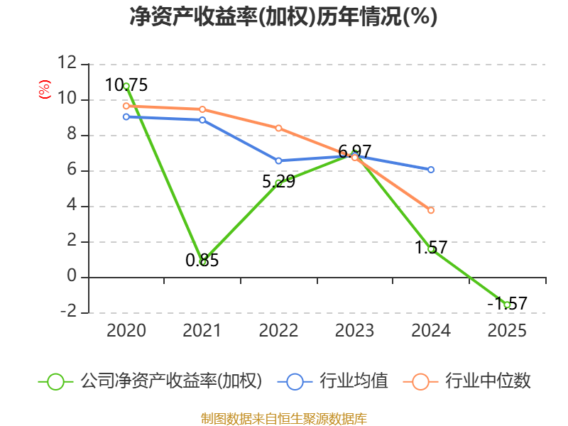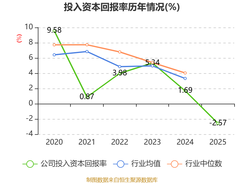 数据显示,2025年公司加权平均净资产收益率为-1.57%,较上年同期下降3.14个百分点。公司2025年投入资本回报率为-2.57%,较上年同期下降4.26个百分点。