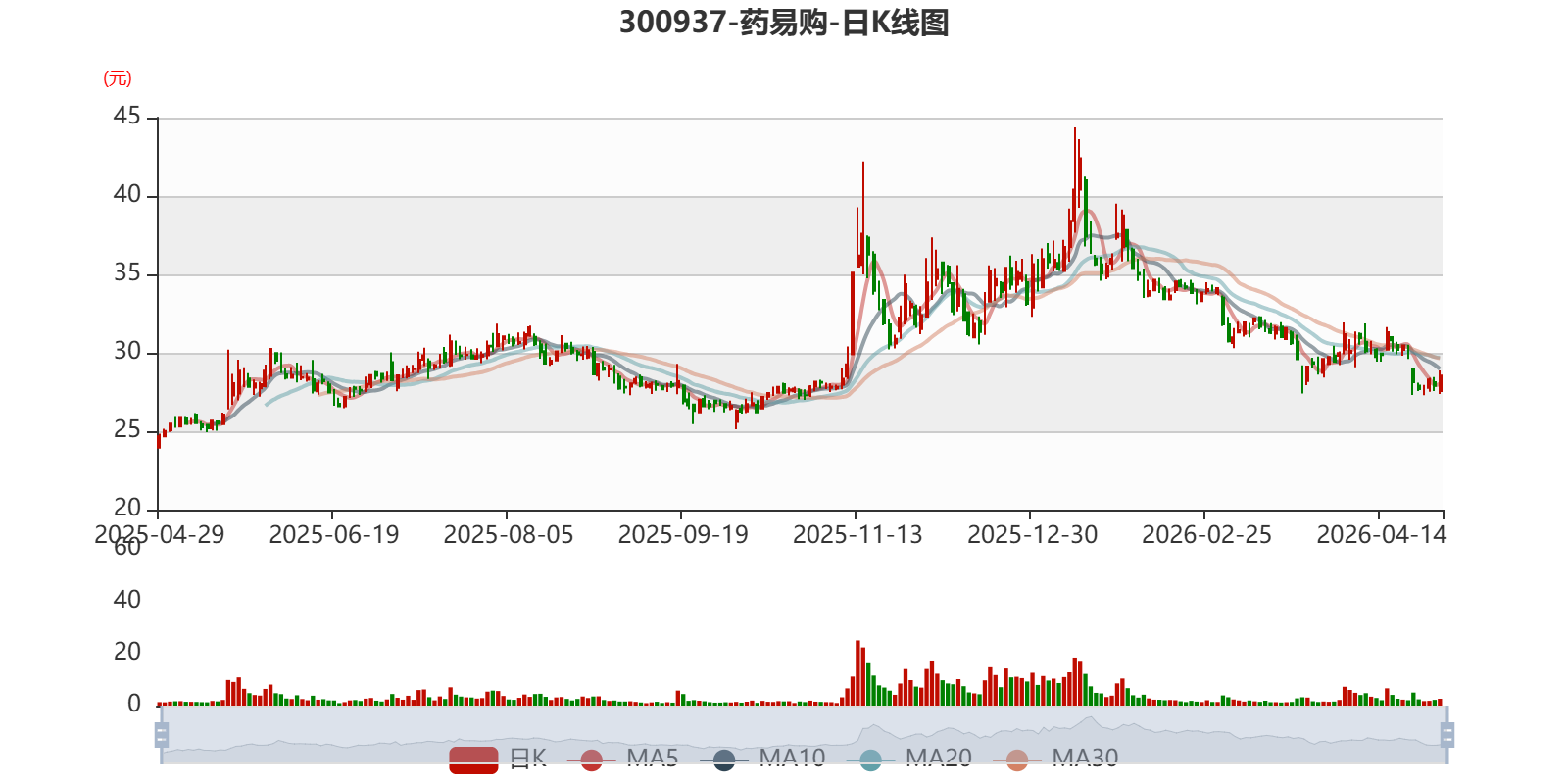 中证智能财讯药易购(300937)4月29日披露2025年年度报告。2025年,公司实现营业总收入44.54亿元,同比增长1.35%;归母净利润亏损1285.15万元,上年同期盈利1320.01万元;扣非净利润亏损1430.2万元,上年同期盈利737.68万元;经营活动产生的现金流量净额为-1322.53万元,上年同期为1.24亿元;报告期内,药易购基本每股收益为-0.1343元,加权平均净资产收益率为-1.57%。