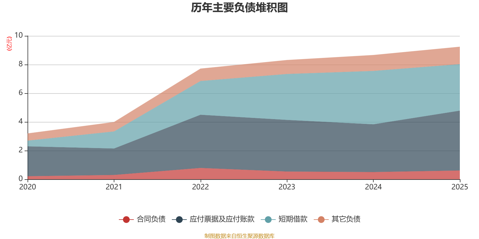 负债重大变化方面,截至2025年末,公司应付票据及应付账款较上年末增加25.27%,占公司总资产比重上升4.67个百分点;短期借款较上年末减少12.93%,占公司总资产比重下降3.04个百分点;其他应付款(含利息和股利)较上年末增加77.15%,占公司总资产比重上升0.78个百分点;合同负债较上年末增加22.02%,占公司总资产比重上升0.6个百分点。