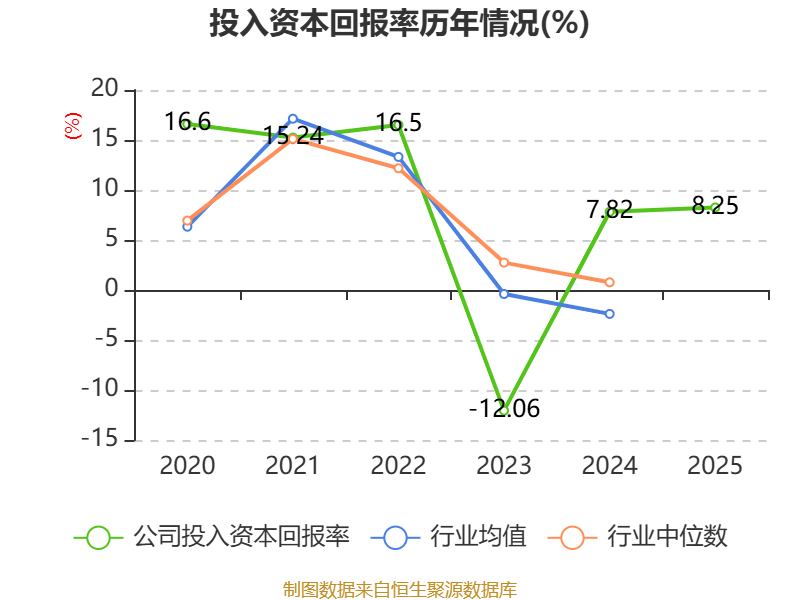 数据显示,2025年公司加权平均净资产收益率为9.53%,较上年同期下降0.07个百分点。公司2025年投入资本回报率为8.25%,较上年同期上升0.43个百分点。