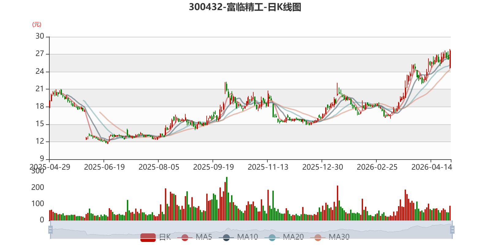 以4月28日收盘价计算,富临精工目前市盈率(TTM)约为104.53倍,市净率(LF)约9.51倍,市销率(TTM)约3.31倍。