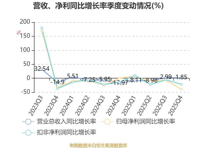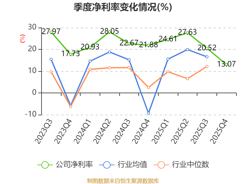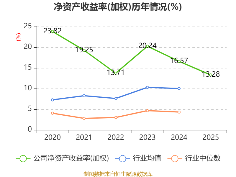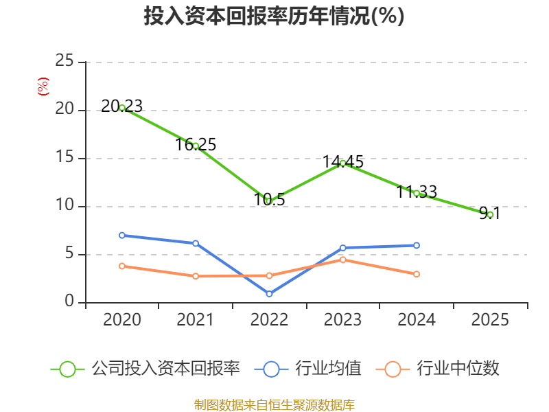 数据显示,2025年公司加权平均净资产收益率为13.28%,较上年同期下降3.29个百分点。公司2025年投入资本回报率为9.1%,较上年同期下降2.23个百分点。