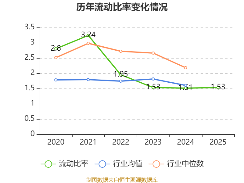 2025年,公司流动比率为1.53,速动比率为0.96。