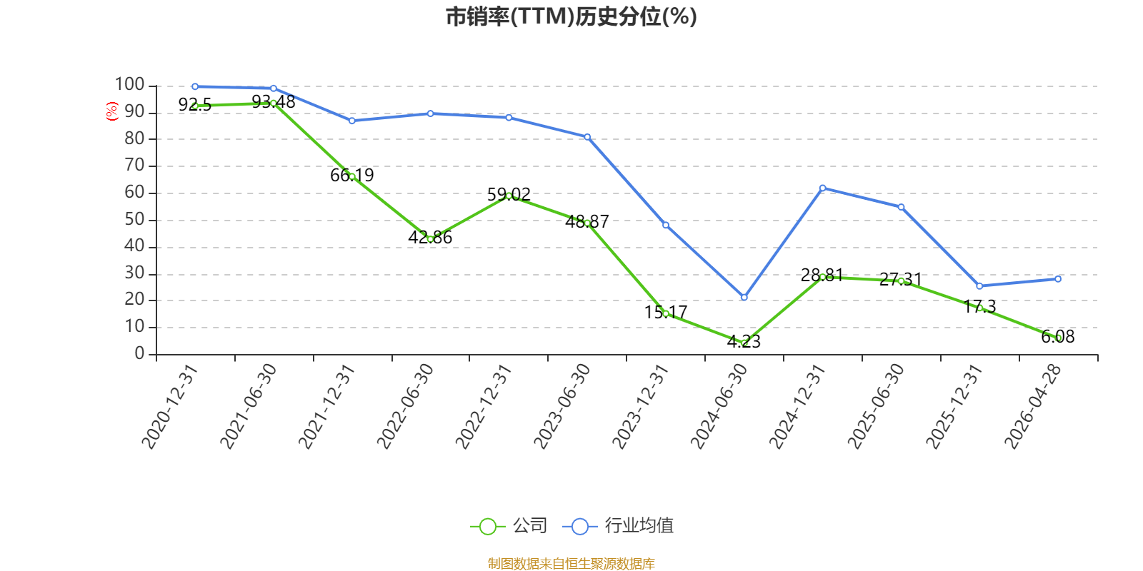 以4月28日收盘价计算,百润股份目前市盈率(TTM)约为27.13倍,市净率(LF)约3.49倍,市销率(TTM)约5.87倍。