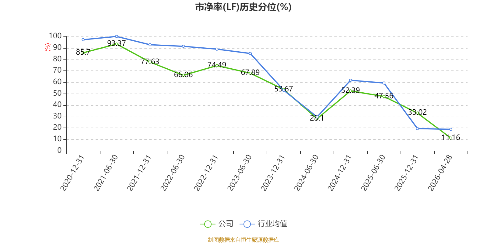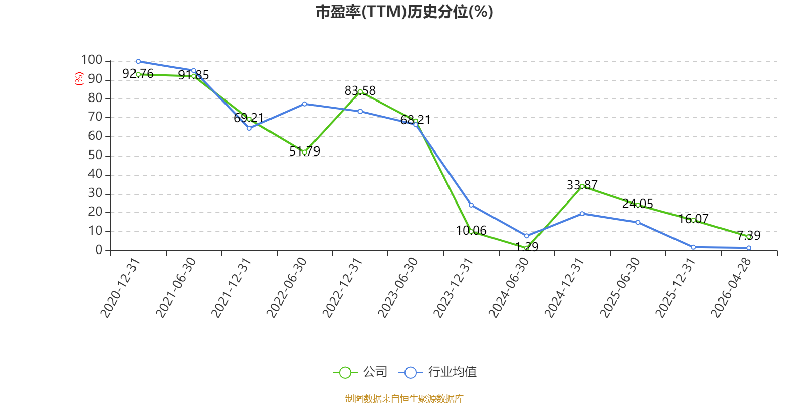 市盈率、市净率为负时,不显示当期分位数,会导致折线图中断。