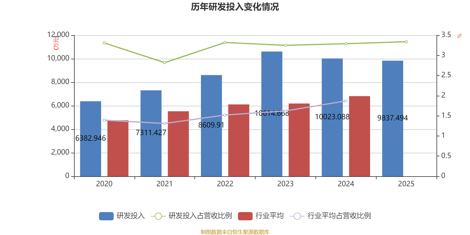 2025年全年,公司研发投入金额为9837.49万元,同比下降1.85%;研发投入占营业收入比例为3.34%,相比上年同期上升0.05个百分点。此外,公司全年研发投入资本化率为0%。