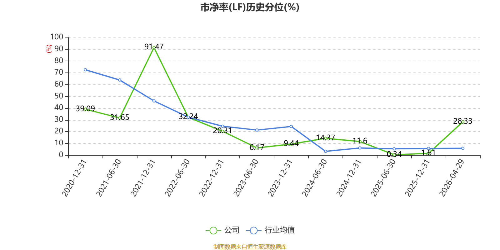 市盈率、市净率为负时,不显示当期分位数,会导致折线图中断。