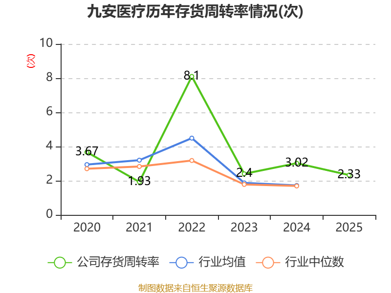中证智能财讯九安医疗(002432)4月29日披露2025年年度报告。2025年,公司实现营业总收入13.66亿元,同比下降47.32%;归母净利润22.67亿元,同比增长35.84%;扣非净利润22.92亿元,同比增长36.39%;经营活动产生的现金流量净额为-1.67亿元,上年同期为9.87亿元;报告期内,九安医疗基本每股收益为5.2292元,加权平均净资产收益率为10.75%。公司2025年度分配预案为:拟向全体股东每10股派现16.5元(含税)。