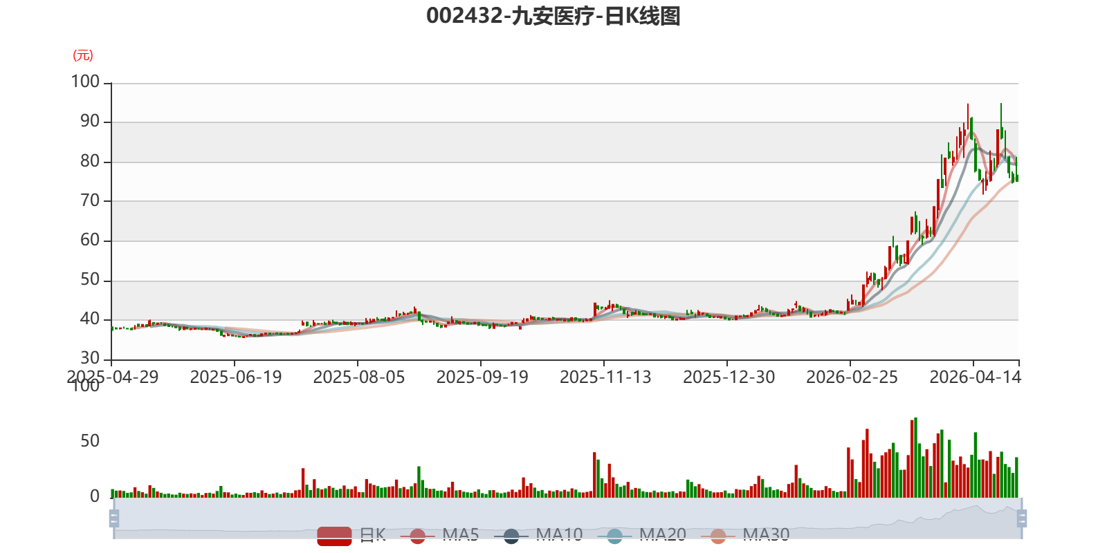 以4月28日收盘价计算,九安医疗目前市盈率(TTM)约为15.37倍,市净率(LF)约1.6倍,市销率(TTM)约25.51倍。