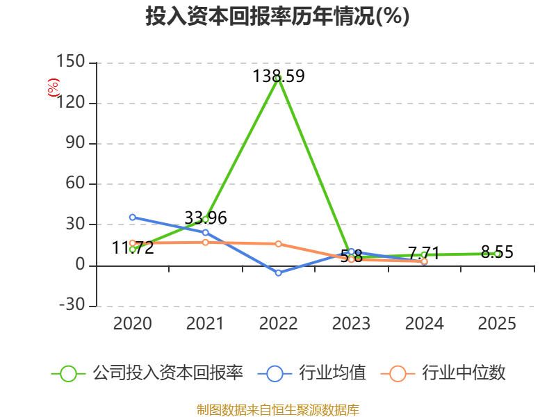 数据显示,2025年公司加权平均净资产收益率为10.75%,较上年同期上升2.55个百分点。公司2025年投入资本回报率为8.55%,较上年同期上升0.84个百分点。