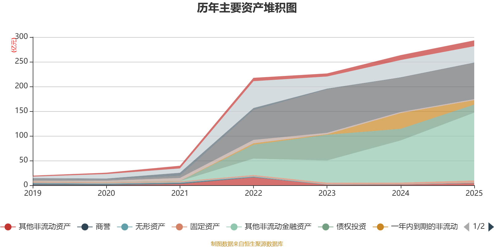 资产重大变化方面,截至2025年末,公司其他非流动金融资产较上年末增加60.81%,占公司总资产比重上升14.42个百分点;一年内到期的非流动资产较上年末减少72%,占公司总资产比重下降9.05个百分点;债权投资较上年末减少31.09%,占公司总资产比重下降3.41个百分点;货币资金较上年末减少5.14%,占公司总资产比重下降1.97个百分点。