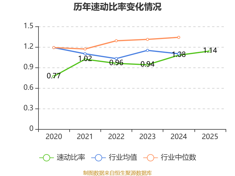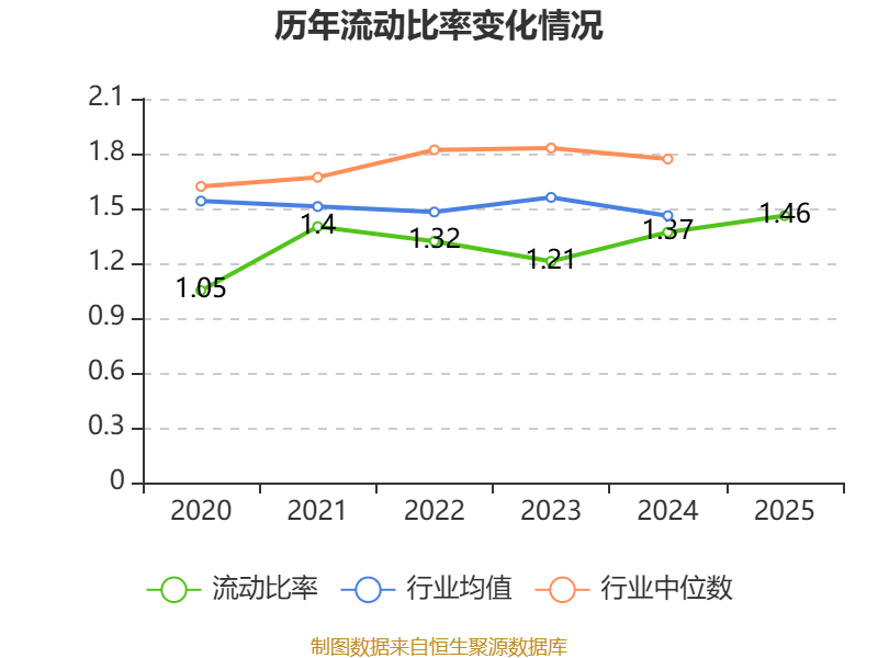 2025年,公司流动比率为1.46,速动比率为1.14。