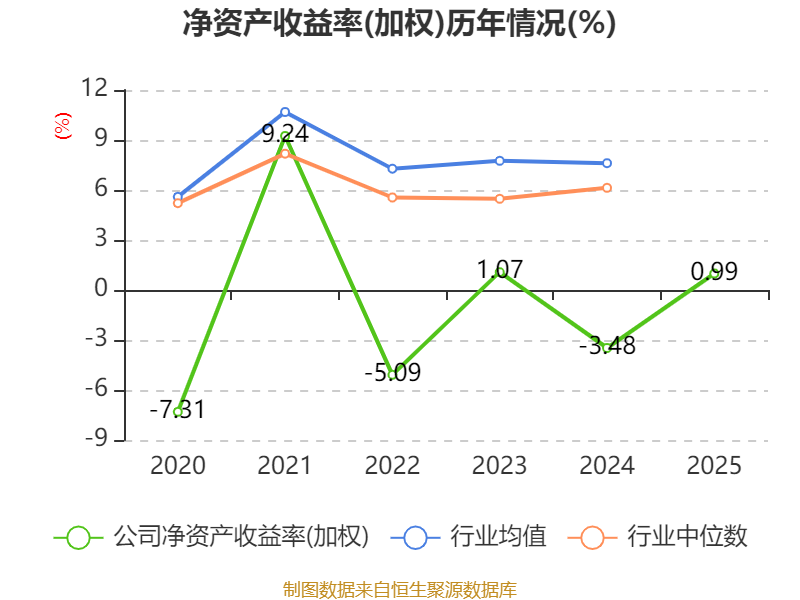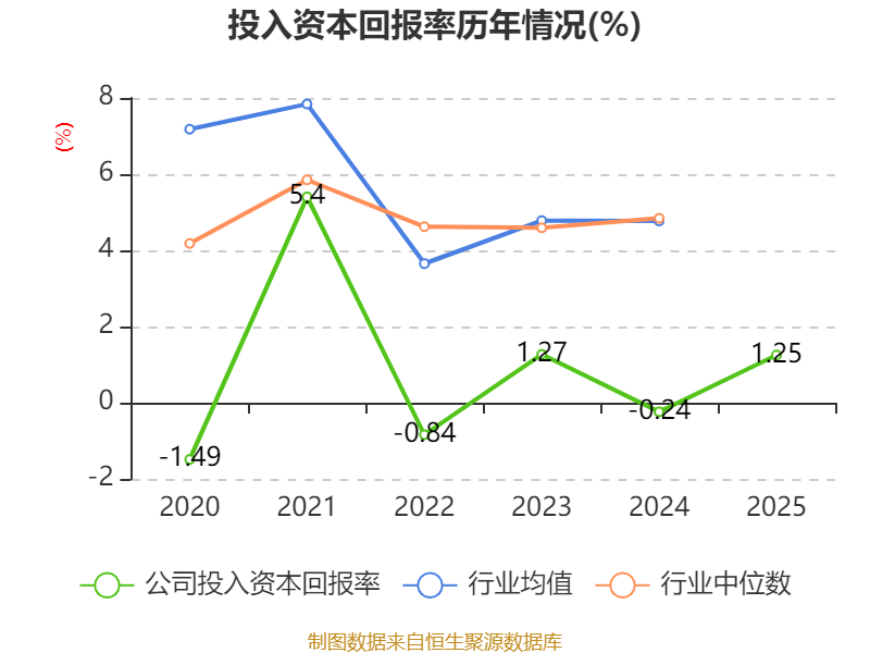 数据显示,2025年公司加权平均净资产收益率为0.99%,较上年同期上升4.47个百分点。公司2025年投入资本回报率为1.25%,较上年同期上升1.49个百分点。