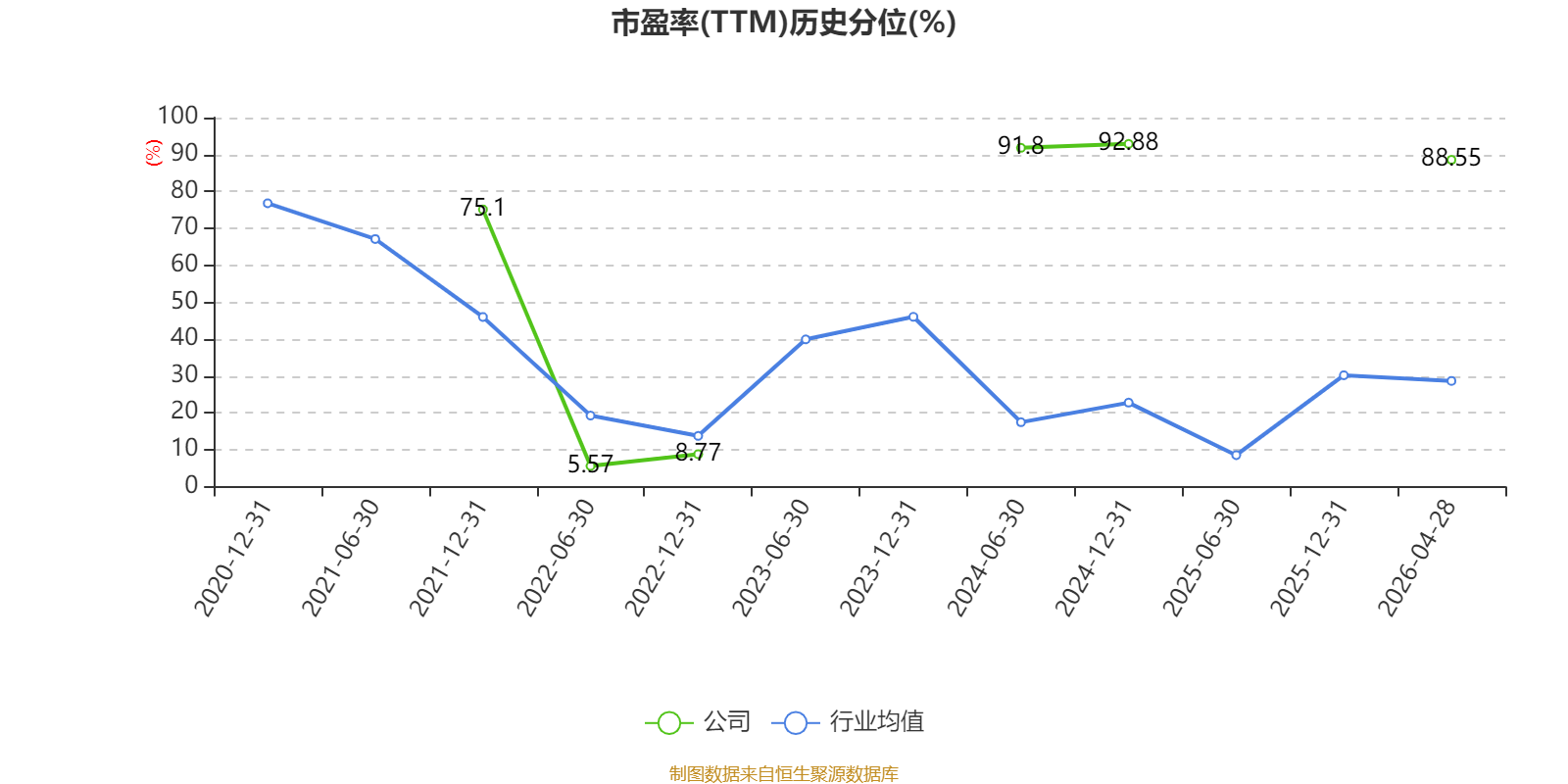 市盈率、市净率为负时,不显示当期分位数,会导致折线图中断。