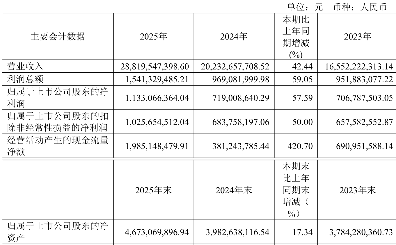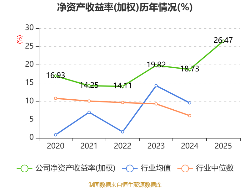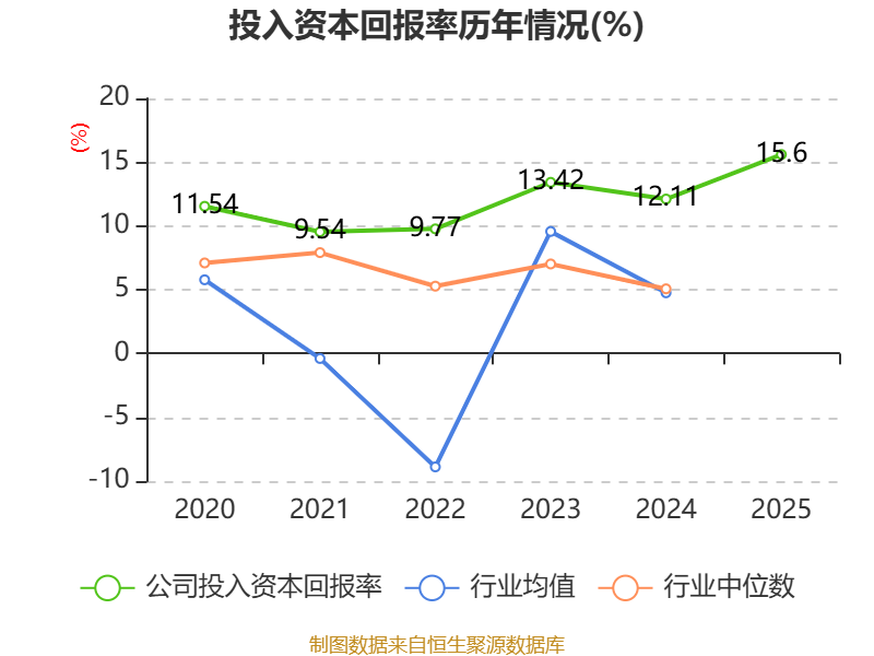 数据显示,2025年公司加权平均净资产收益率为26.47%,较上年同期上升7.74个百分点。公司2025年投入资本回报率为15.6%,较上年同期上升3.49个百分点。
