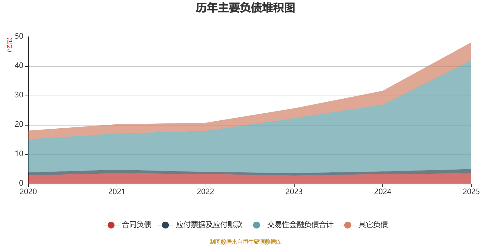 负债重大变化方面,截至2025年末,公司交易性金融负债合计较上年末增加62.86%,占公司总资产比重上升7.15个百分点;合同负债较上年末增加9.21%,占公司总资产比重下降0.82个百分点;租赁负债较上年末减少16.44%,占公司总资产比重下降0.66个百分点;应交税费较上年末增加123.17%,占公司总资产比重上升0.63个百分点。