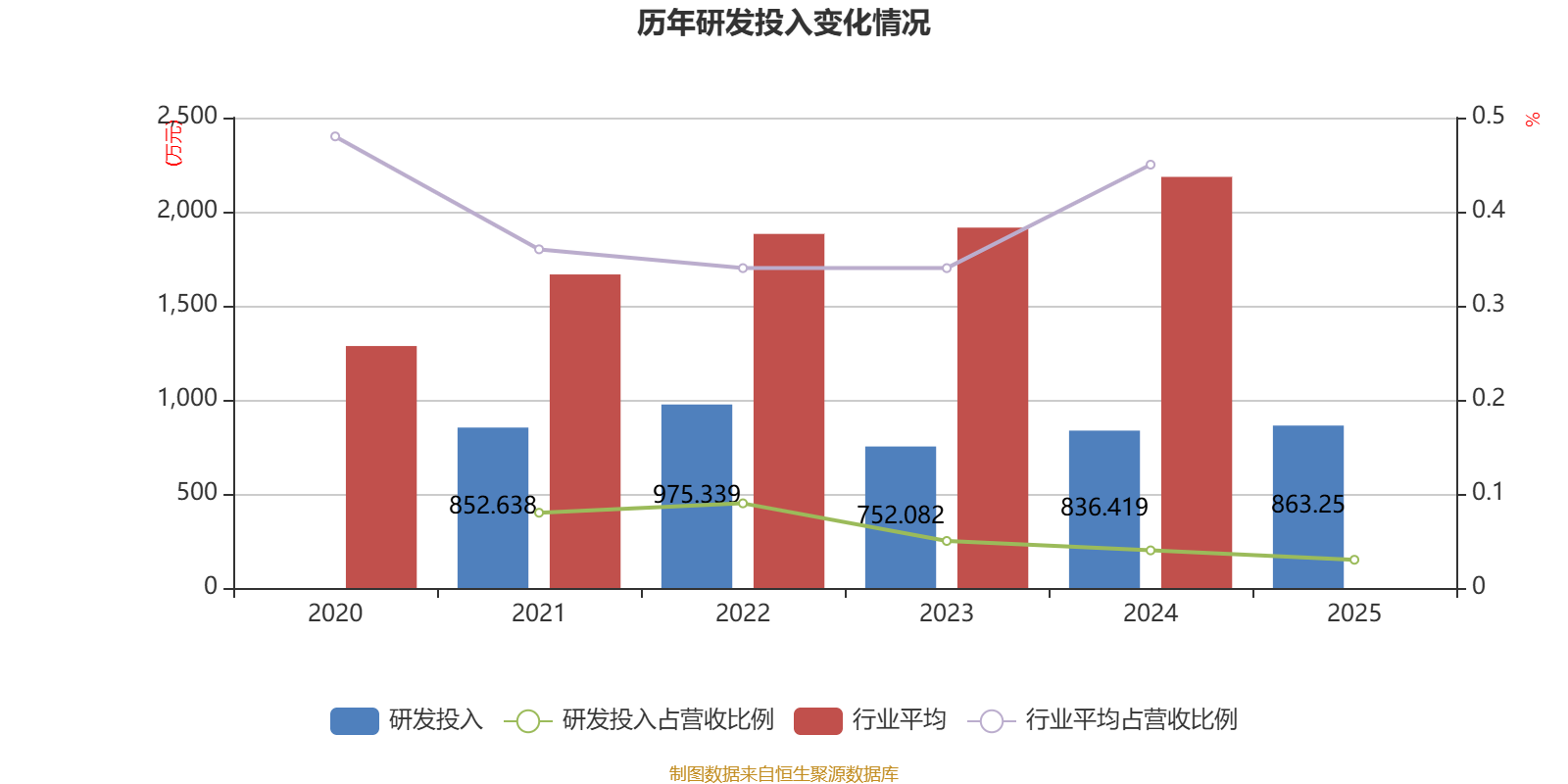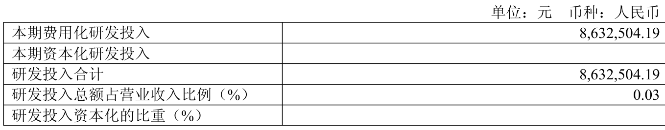 2025年全年,公司研发投入金额为863.25万元,同比增长3.21%;研发投入占营业收入比例为0.03%,相比上年同期下降0.01个百分点。