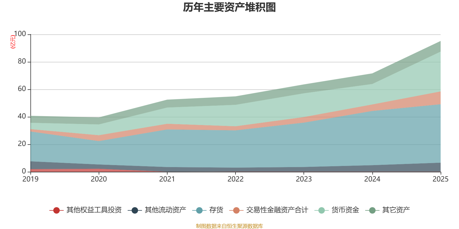 资产重大变化方面,截至2025年末,公司存货较上年末增加7.8%,占公司总资产比重下降10.44个百分点;货币资金较上年末增加94.26%,占公司总资产比重上升9.61个百分点;交易性金融资产合计较上年末增加96.56%,占公司总资产比重上升3.17个百分点;应收票据及应收账款较上年末减少22.25%,占公司总资产比重下降1.43个百分点。