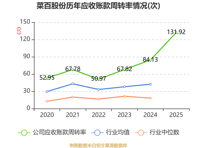 中证智能财讯菜百股份(605599)4月29日披露2025年年度报告。2025年,公司实现营业总收入288.2亿元,同比增长42.44%;归母净利润11.33亿元,同比增长57.59%;扣非净利润10.26亿元,同比增长50.00%;经营活动产生的现金流量净额为19.85亿元,同比增长420.70%;报告期内,菜百股份基本每股收益为1.46元,加权平均净资产收益率为26.47%。公司2025年度分配预案为:拟向全体股东每10股派现7.8元(含税)。