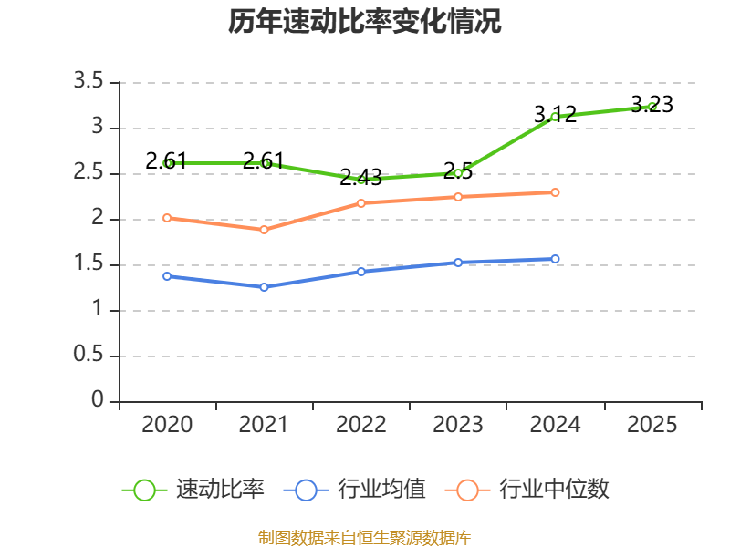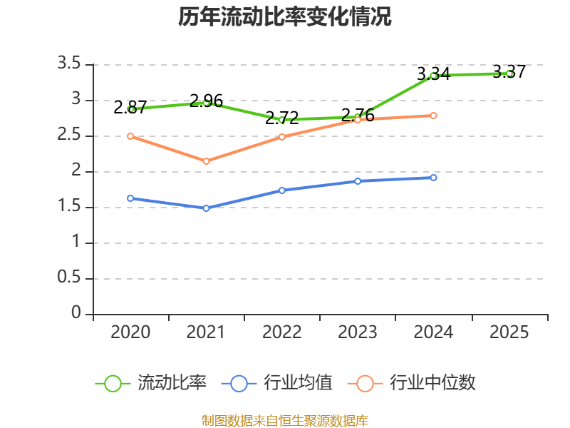 2025年,公司流动比率为3.37,速动比率为3.23。