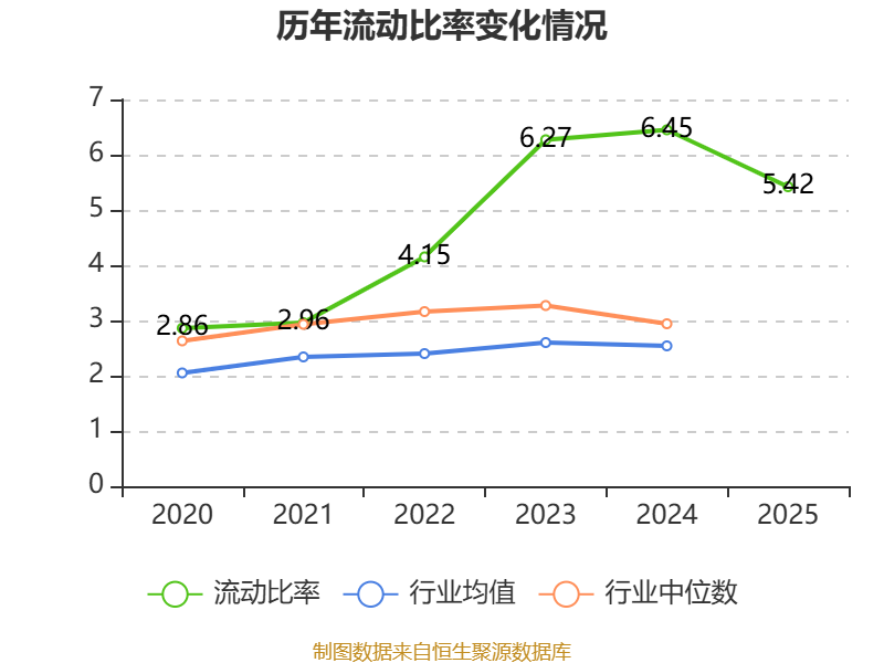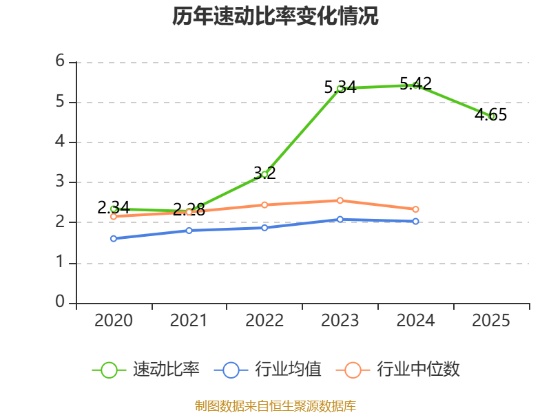 2025年,公司流动比率为5.42,速动比率为4.65。