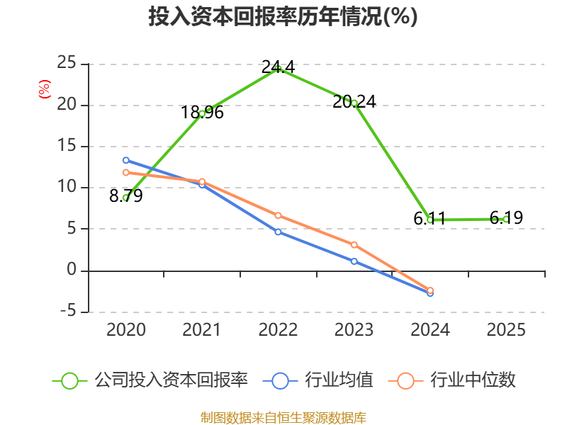 数据显示,2025年公司加权平均净资产收益率为6.74%,较上年同期上升0.05个百分点。公司2025年投入资本回报率为6.19%,较上年同期上升0.08个百分点。