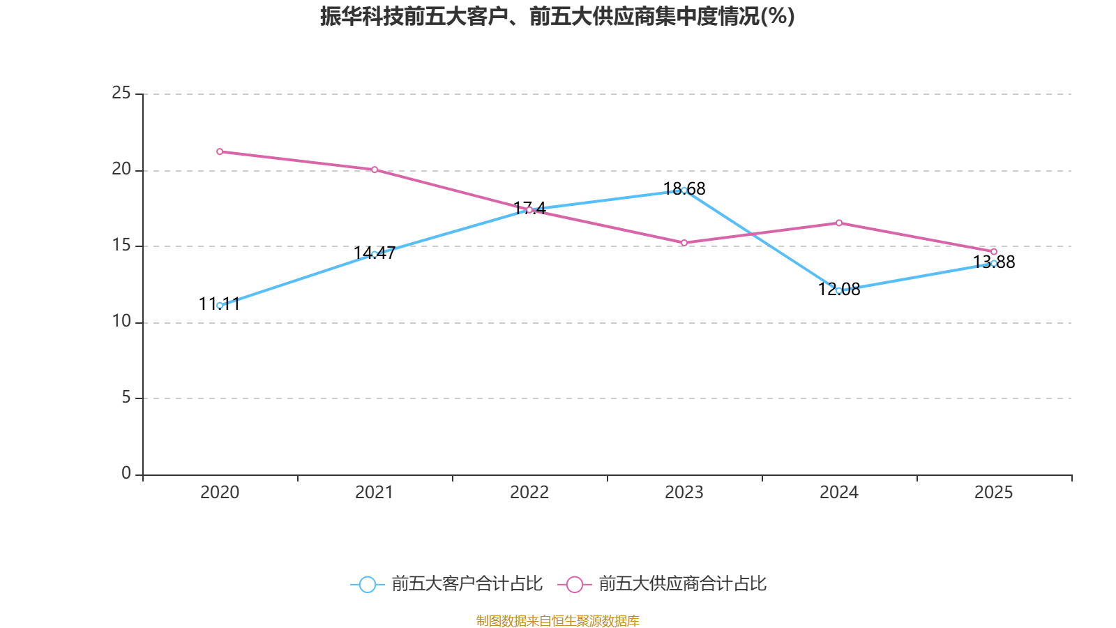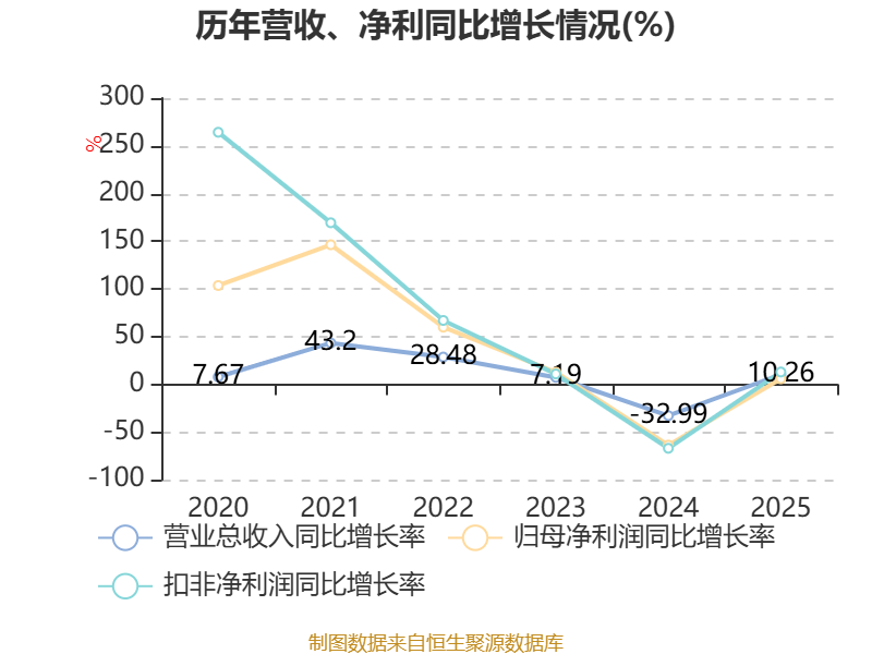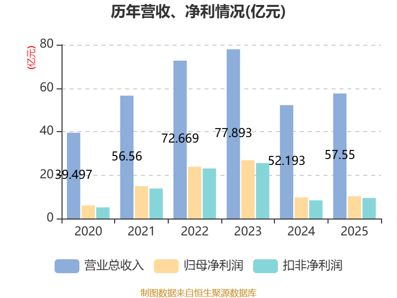 中证智能财讯振华科技(000733)4月29日披露2025年年度报告。2025年,公司实现营业总收入57.55亿元,同比增长10.26%;归母净利润10.25亿元,同比增长5.69%;扣非净利润9.45亿元,同比增长12.80%;经营活动产生的现金流量净额为13.94亿元,同比下降12.90%;报告期内,振华科技基本每股收益为1.8504元,加权平均净资产收益率为6.74%。公司2025年度分配预案为:拟向全体股东每10股派现3.8元(含税)。