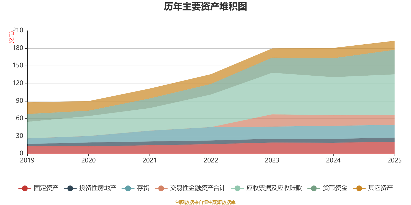 资产重大变化方面,截至2025年末,公司货币资金较上年末增加29.84%,占公司总资产比重上升3.87个百分点;在建工程合计较上年末减少61.54%,占公司总资产比重下降1.17个百分点;交易性金融资产合计较上年末减少5.31%,占公司总资产比重下降1.12个百分点;存货较上年末减少2.74%,占公司总资产比重下降1.1个百分点。