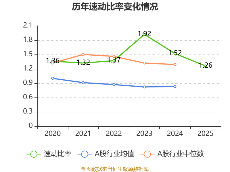 2025年,公司流动比率为1.26,速动比率为1.26。