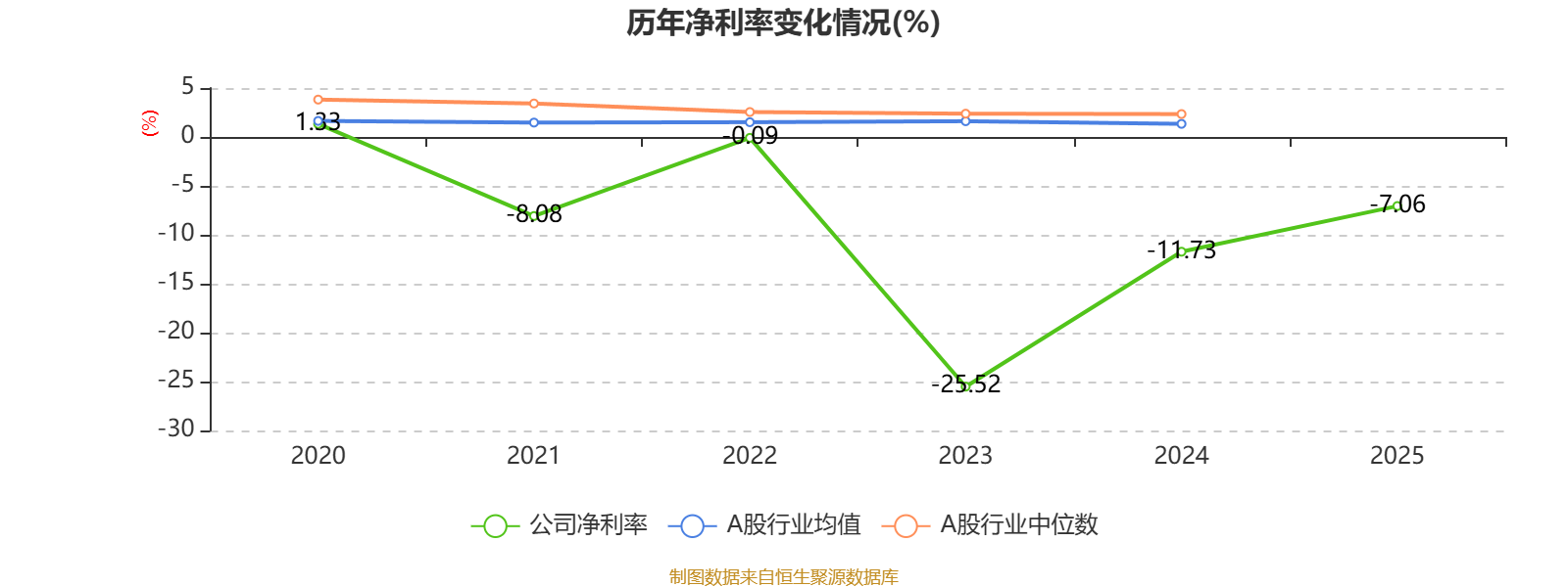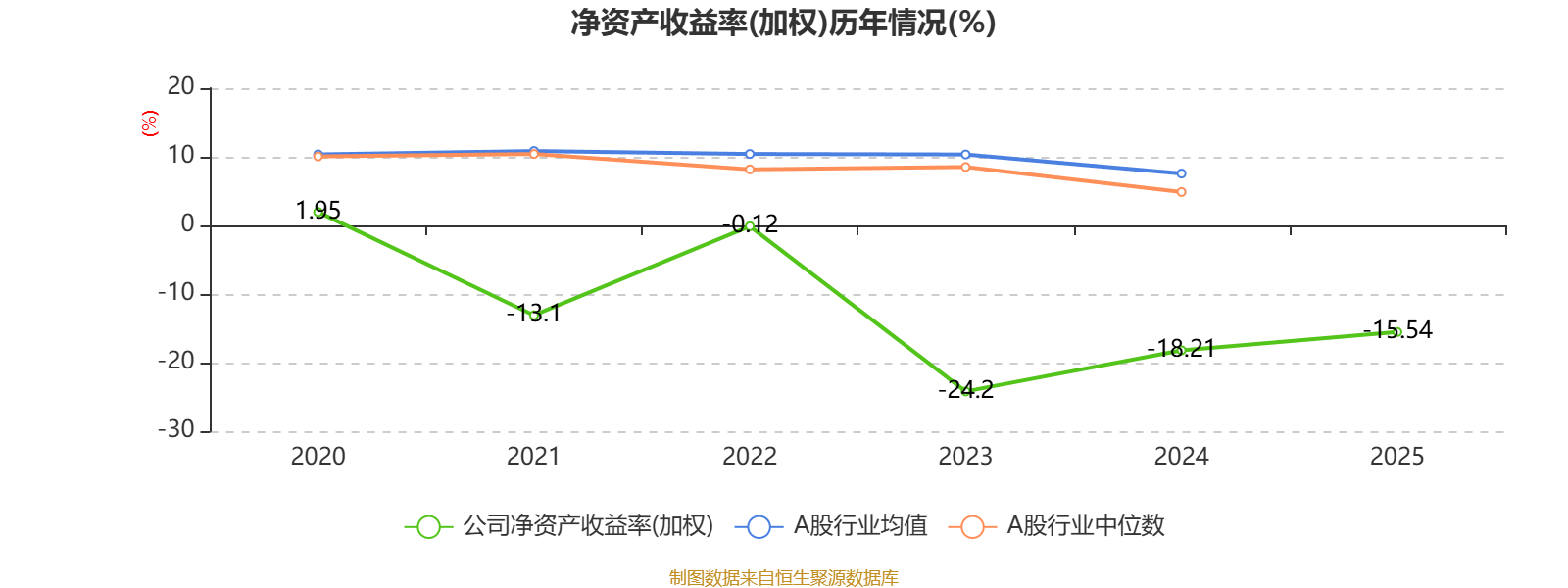 数据显示,2025年公司平均净资产收益率为-15.54%,较上年同期上升2.67个百分点。
