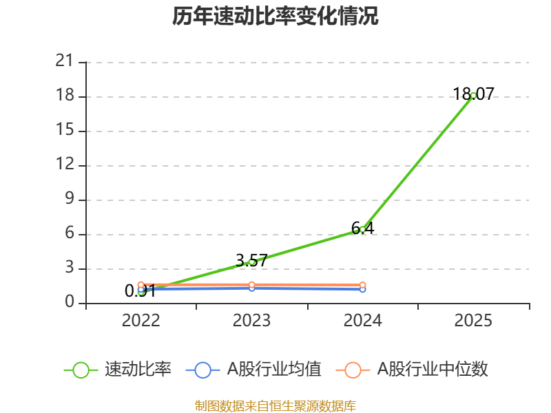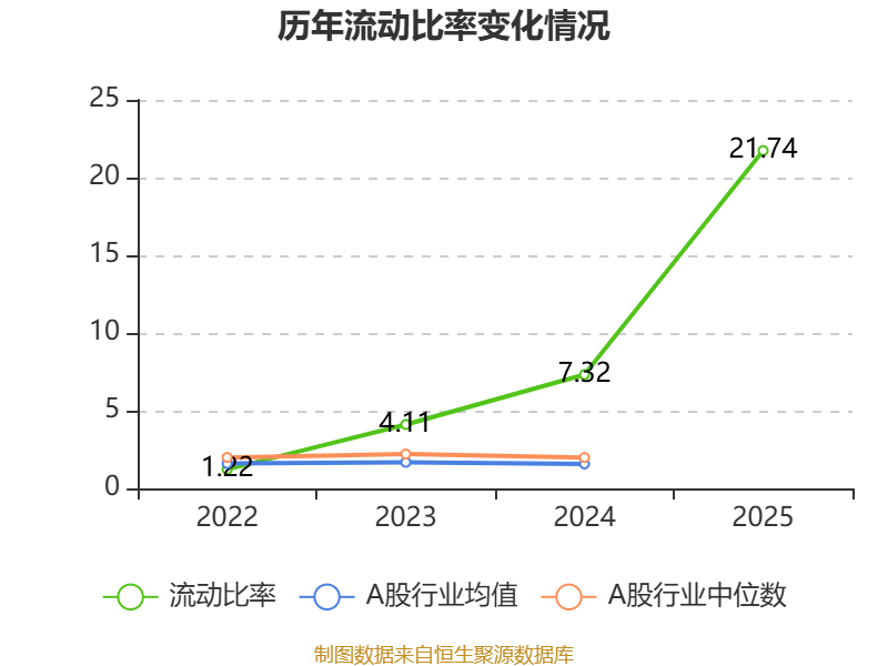 2025年,公司流动比率为21.74,速动比率为18.07。