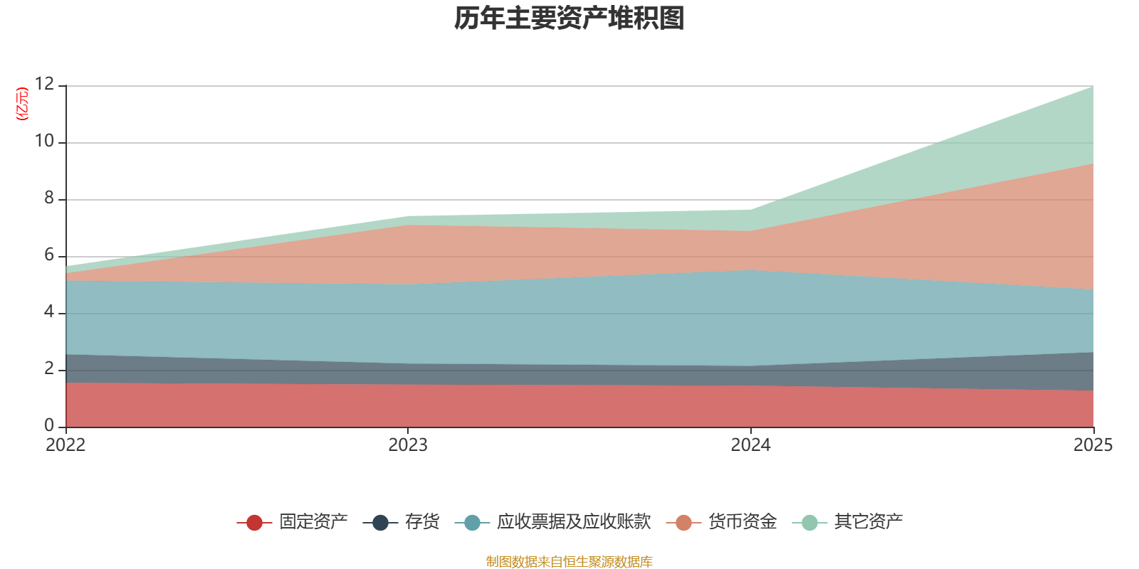 资产重大变化方面,截至2025年末,公司应收票据及应收账款较上期末减少34.47%,占公司总资产比重下降25.74个百分点;货币资金较上期末增加222.27%,占公司总资产比重上升18.98个百分点;固定资产较上期末减少12.1%,占公司总资产比重下降8.33个百分点;存货较上期末增加94.5%,占公司总资产比重上升2.18个百分点。