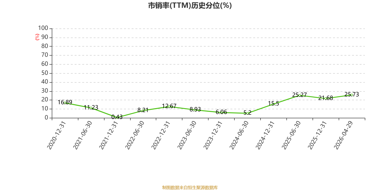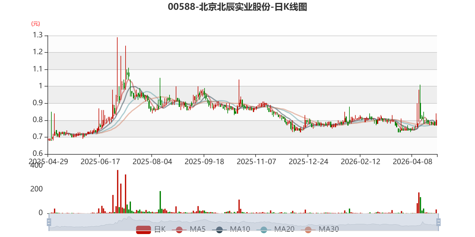 以4月29日收盘价计算,北京北辰实业股份目前市净率(TTM)约0.18倍,市销率(TTM)约0.4倍。