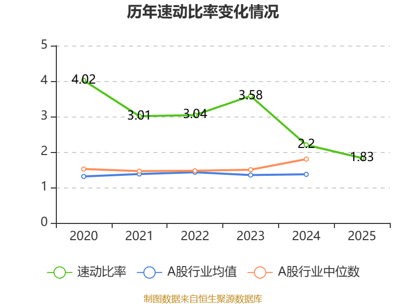 2025年,公司流动比率为1.97,速动比率为1.83。