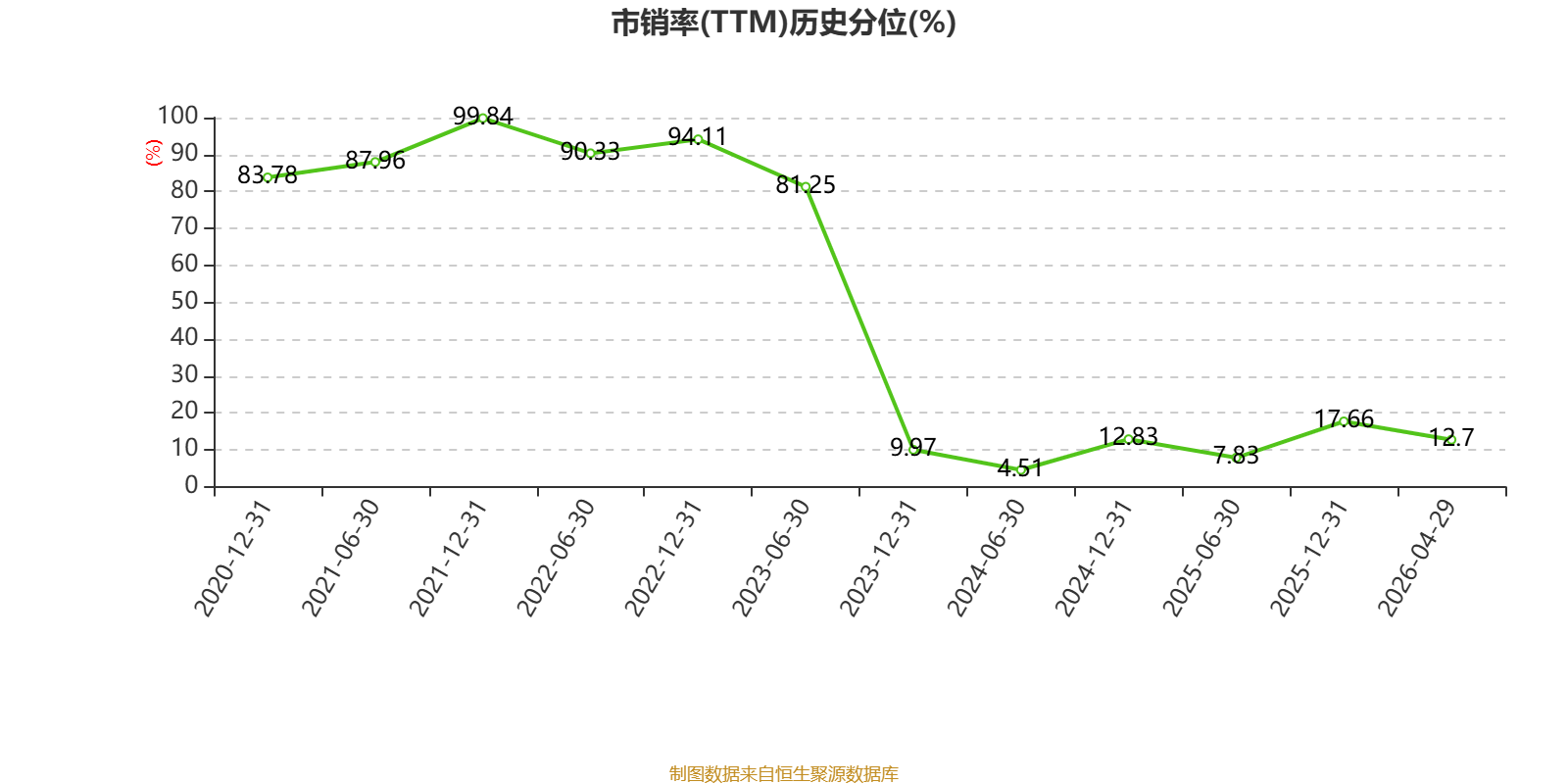 以4月29日收盘价计算,亨鑫科技目前市净率(TTM)约0.35倍,市销率(TTM)约0.23倍。