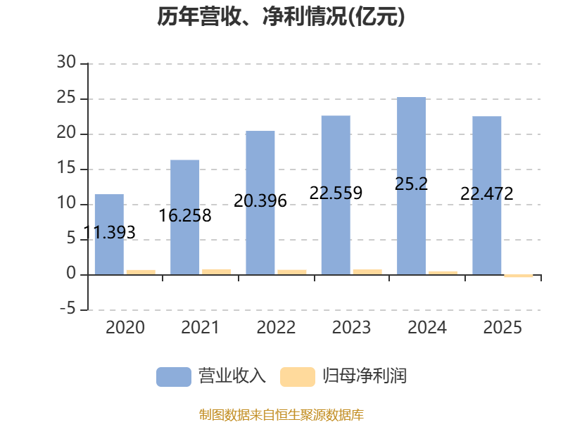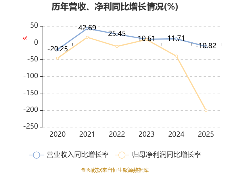 数据显示,2025年公司平均净资产收益率为-2.79%,较上年同期下降5.18个百分点。