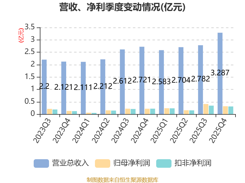 2025年全年,公司研发投入金额为4523.67万元,同比增长28.72%;研发投入占营业收入比例为3.98%,相比上年同期上升0.34个百分点。此外,公司全年研发投入资本化率为0%。
