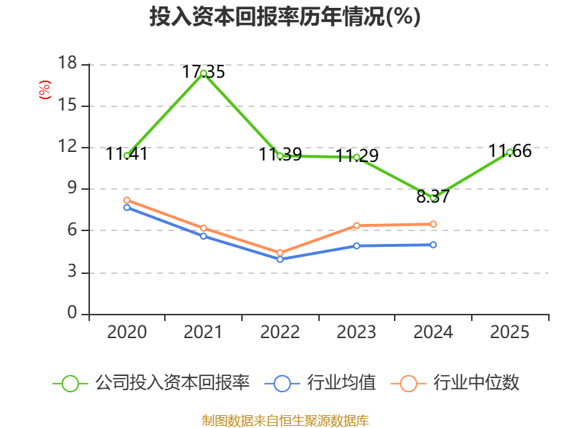 数据显示,2025年公司加权平均净资产收益率为14.29%,较上年同期上升5.2个百分点。公司2025年投入资本回报率为11.66%,较上年同期上升3.29个百分点。
