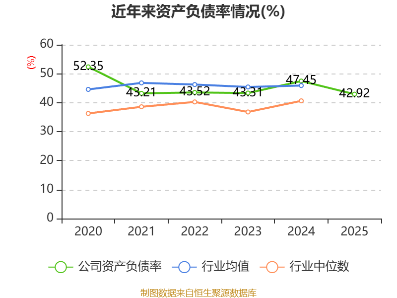 负债重大变化方面,截至2025年末,公司应付票据及应付账款较上年末减少19.27%,占公司总资产比重下降3.95个百分点;长期借款较上年末减少63.01%,占公司总资产比重下降2.44个百分点;短期借款较上年末增加16.38%,占公司总资产比重上升2.08个百分点;一年内到期的非流动负债较上年末增加189.73%,占公司总资产比重上升1.62个百分点。