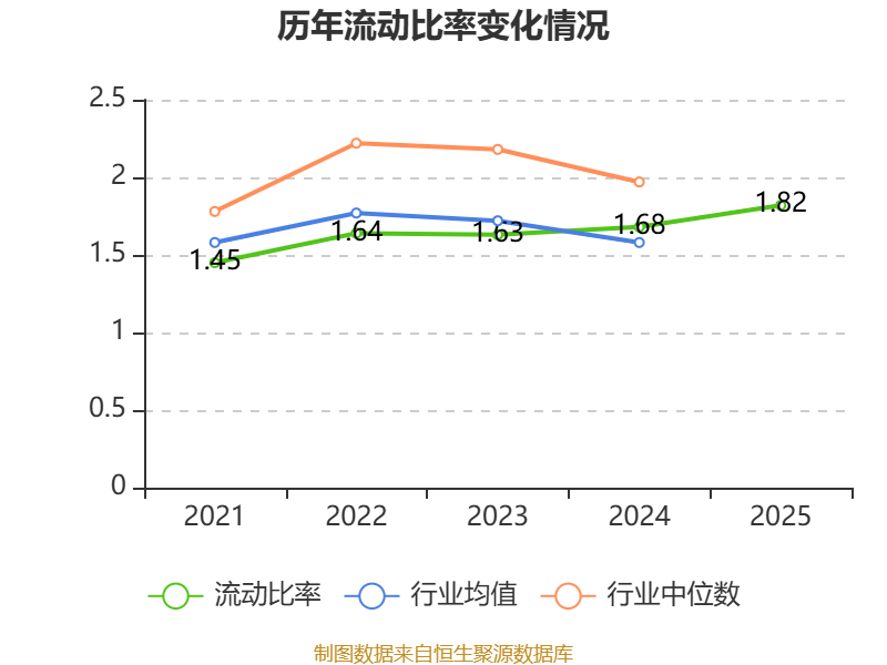 2025年,公司流动比率为1.82,速动比率为1.42。