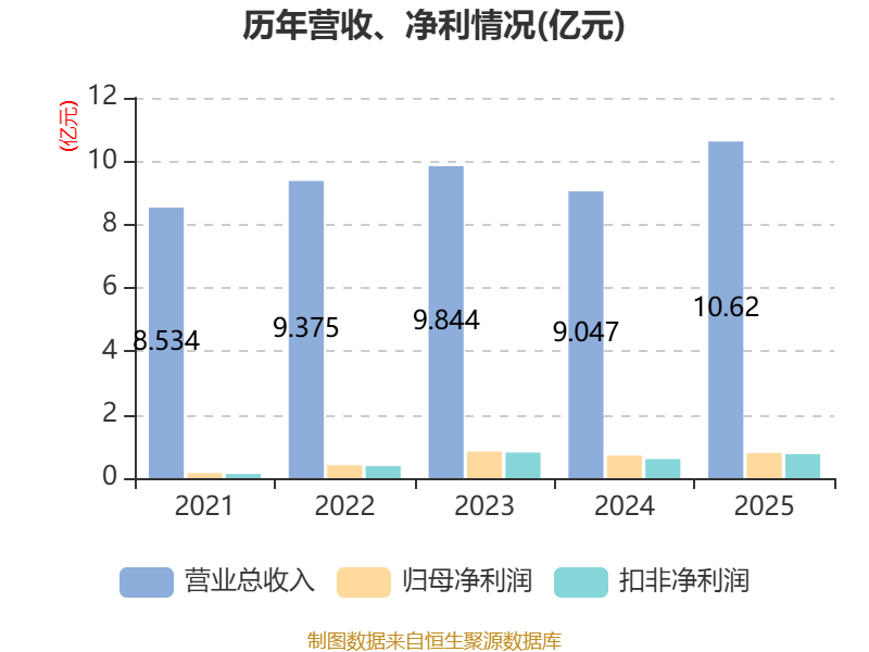 中证智能财讯国亮新材(920076)4月28日披露2025年年度报告。2025年,公司实现营业总收入10.62亿元,同比增长17.39%;归母净利润7932.89万元,同比增长11.79%;扣非净利润7567.61万元,同比增长25.90%;经营活动产生的现金流量净额为5126.47万元,同比下降41.75%;报告期内,国亮新材基本每股收益为1.21元,加权平均净资产收益率为10.43%。公司2025年度分配预案为:拟向全体股东每10股转4股,派现3元(含税)。