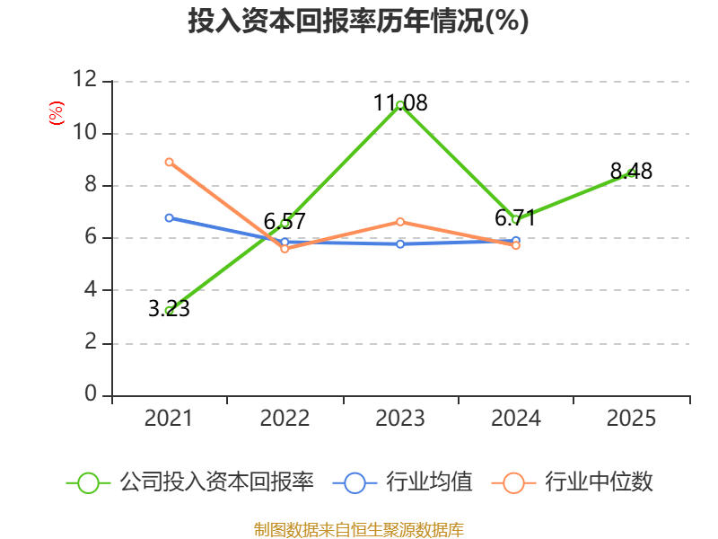 数据显示,2025年公司加权平均净资产收益率为10.43%,较上年同期上升0.12个百分点。公司2025年投入资本回报率为8.48%,较上年同期上升1.77个百分点。