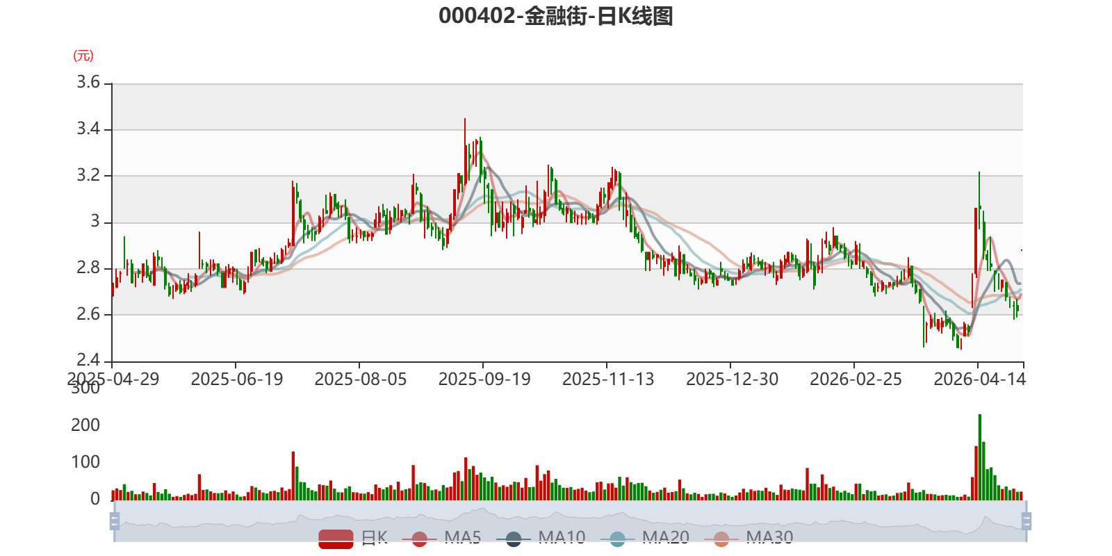 以4月28日收盘价计算,金融街目前市盈率(TTM)约为-1.45倍,市净率(LF)约0.4倍,市销率(TTM)约0.98倍。