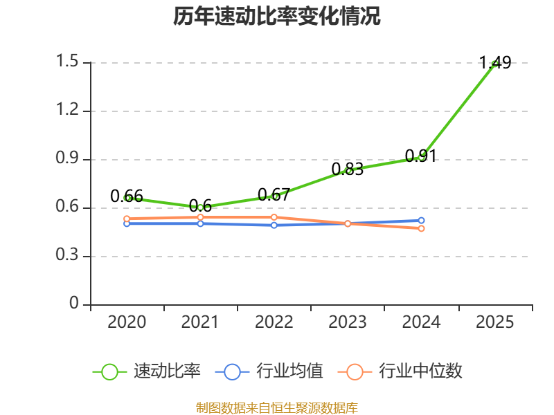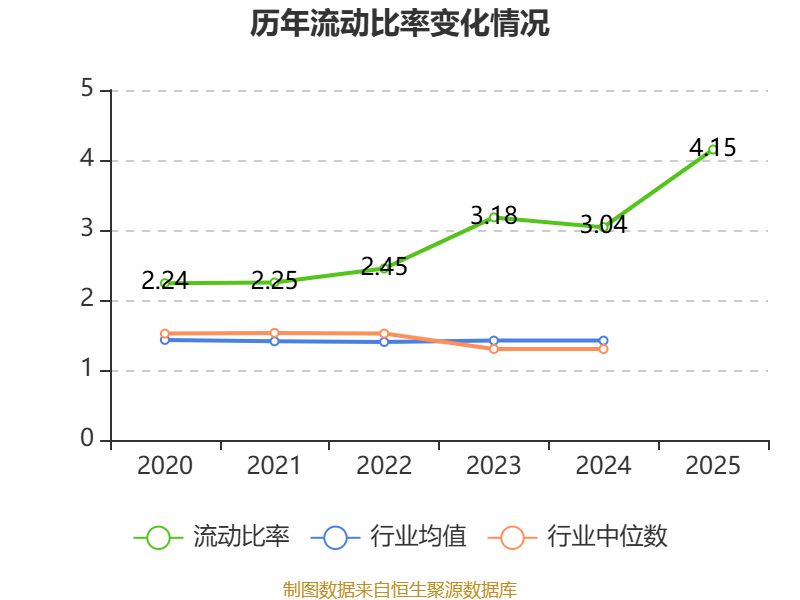 2025年,公司流动比率为4.15,速动比率为1.49。