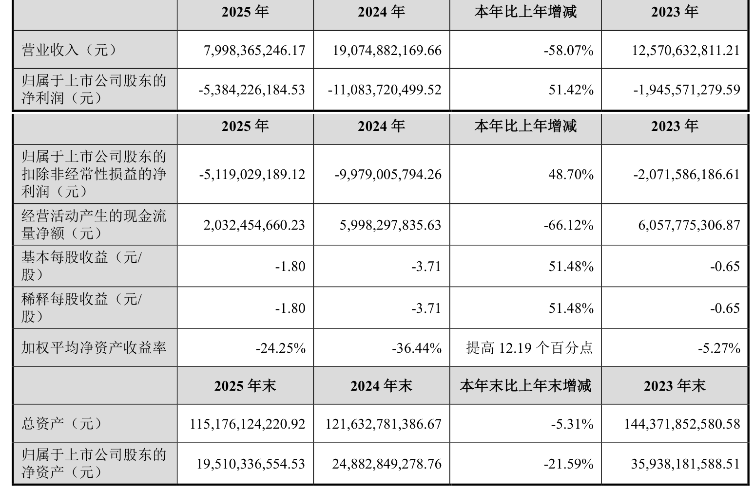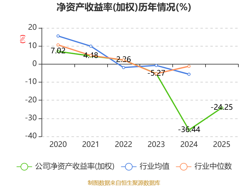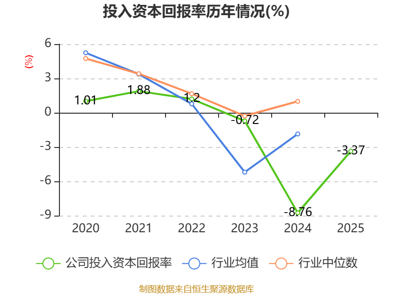数据显示,2025年公司加权平均净资产收益率为-24.25%,较上年同期上升12.19个百分点。公司2025年投入资本回报率为-3.37%,较上年同期上升5.39个百分点。