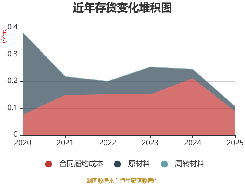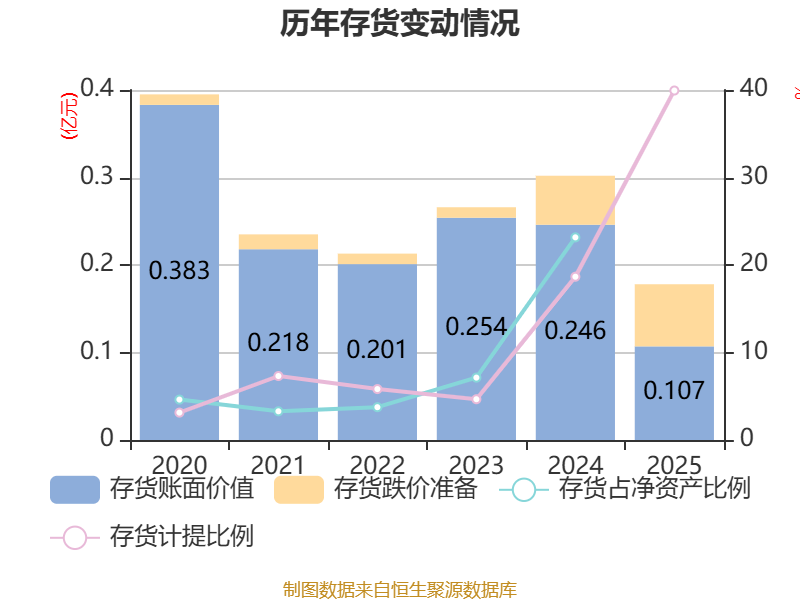 从存货变动来看,截至2025年末,公司存货账面价值为1070.18万元,较上年末减少1391.8万元。其中,存货跌价准备为711.67万元,计提比例为39.94%。