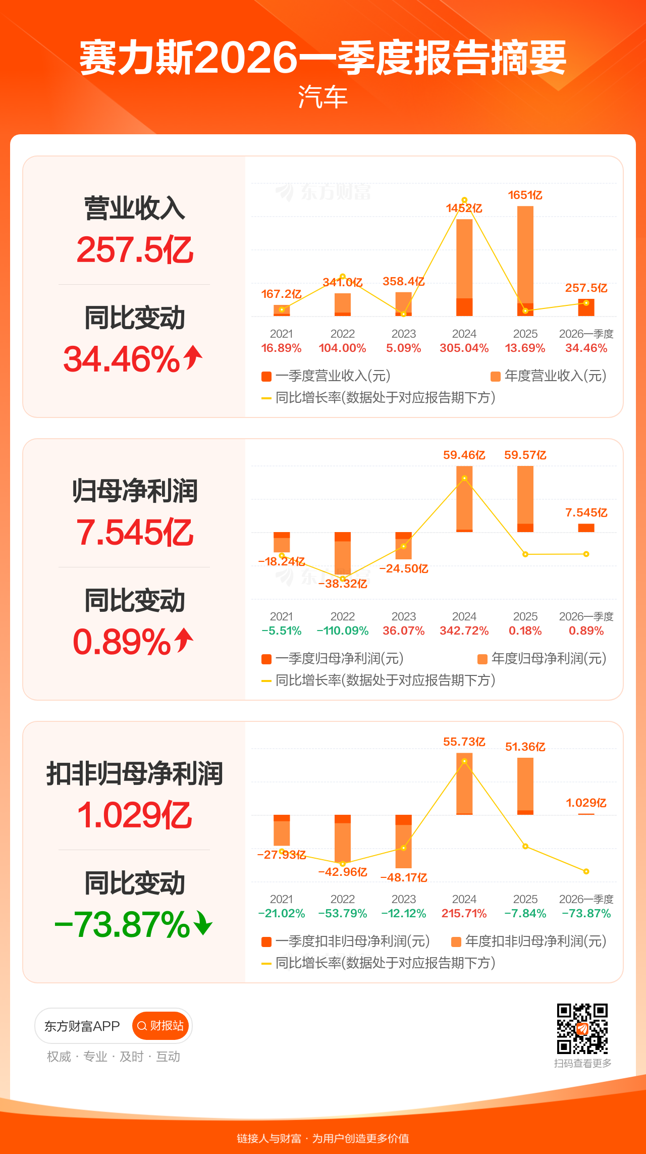 图解财报:赛力斯一季度归母净利润7.54亿元,同比增长0.89%