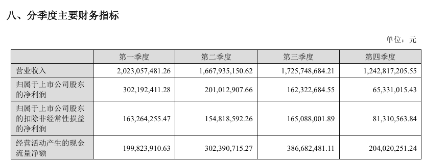 其中2025年第四季度,公司营业收入为12.4亿元,同比下降17.0%;归母净利润自去年同期亏损8.99亿元成功扭亏,实现归母净利润6533万元;扣非归母净利润自去年同期亏损8.64亿元成功扭亏,实现扣非归母净利润8131万元。